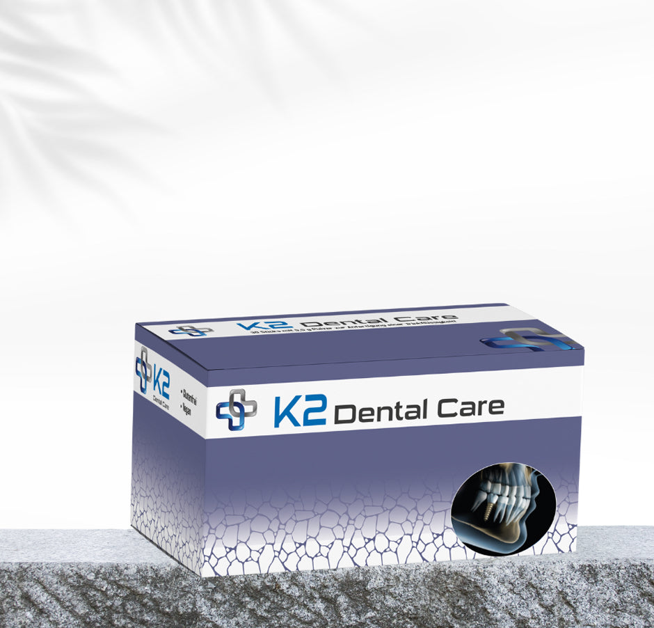 Erleben Sie einen revolutionären Ansatz für dentalen Schutz mit K2 DentalCare. Unser Mikronährstoff-Komplex ist speziell entwickelt, um die Knochenstruktur im Kieferbereich zu stärken und die Einheilung von Implantaten zu verbessern. Er ist ebenfalls ideal zur Kräftigung Ihrer natürlichen Zähne. Für beste Ergebnisse empfehlen wir die Einnahme als viermonatige Kur vor und nach kieferchirurgischen Eingriffen. Darüber Hinaus kann Sie Vitamin K2 vor Karies schützen. Klingt verrückt, macht aber Sinn.